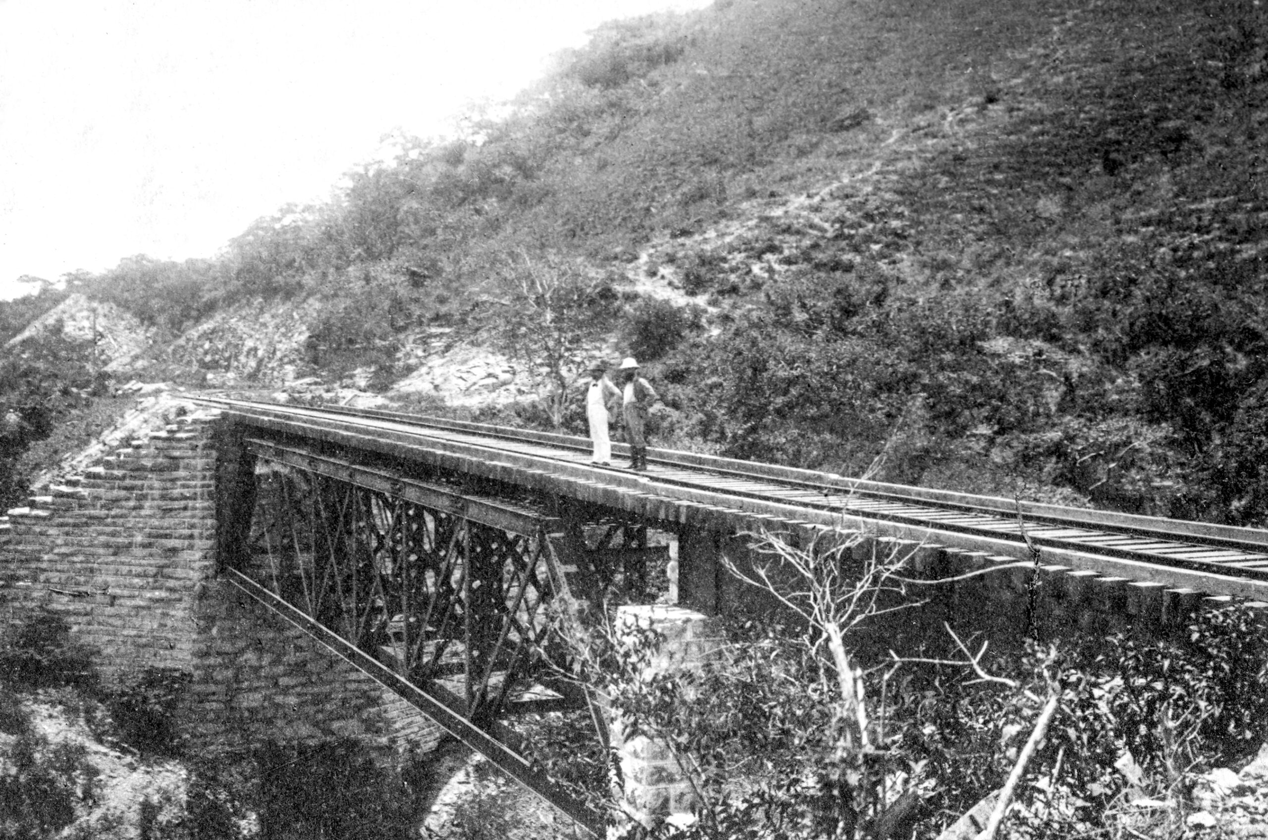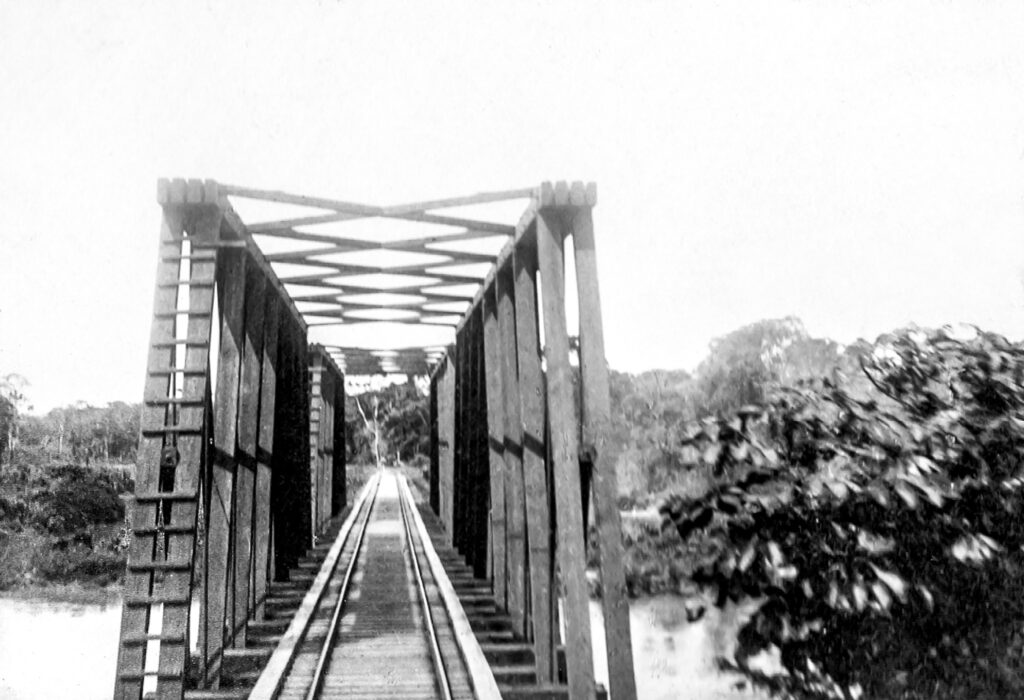 Vista del Ferrocarril de Tehuantepec, el río Tolosa Álbum:Las obras del Puerto de Veracruz y el Istmo de Tehuantepec desde el Atlántico al Pacifico,1897.
